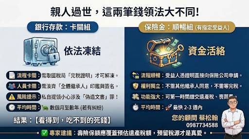#遺產繼承 #遺產稅申報 #銀行凍結 #保險受益人 #預留稅源 #資產配置 #法律常識 #財富傳承 #偽造文書